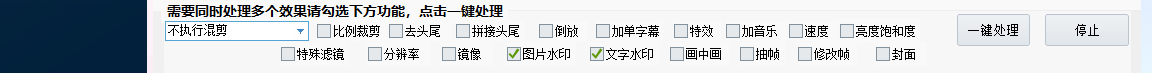 步骤 4:选中最下方图片水印和文字水印,并点击一键处理。就可以批量处理视频了。
