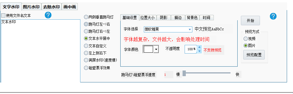 「文本水印」设置: